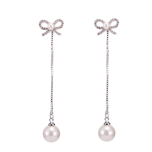 Twilight Bowdrop Earrings – Sterling Silver Needle Bow Earrings Long Pendant Pearl Hypoallergenic Earrings Copper Jewelry Two Ways